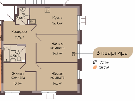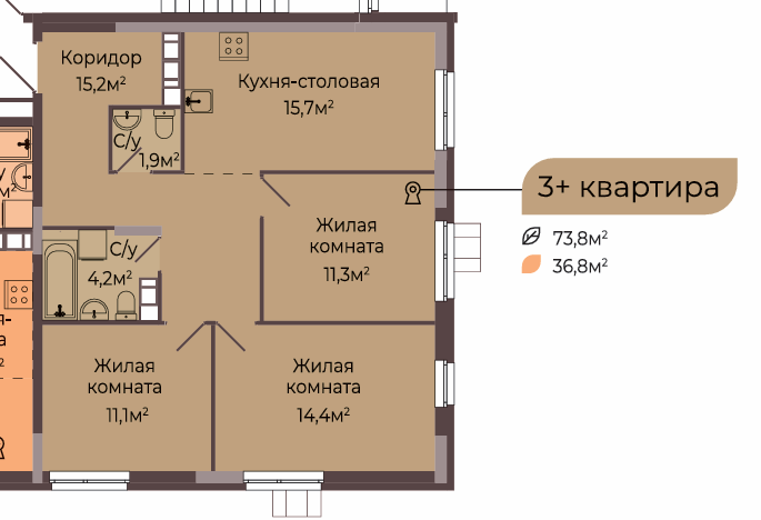 Площадь от 74 м2